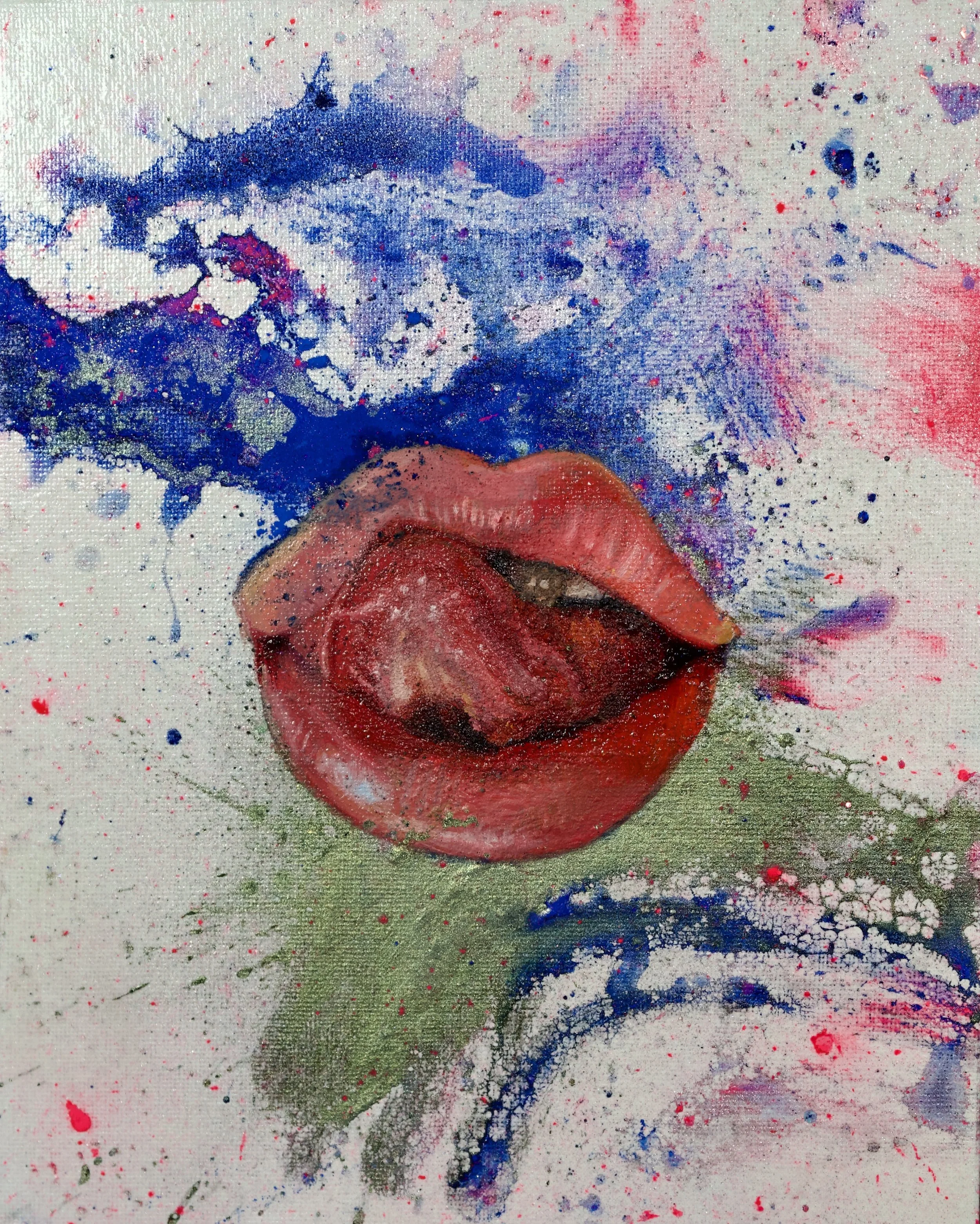 This series is something truly special. I created 12 original pieces, only once, and never repeated them. Each painting features the mouth of a colleague from the adult world. The mouth is one of the most erotic and expressive parts of the body. It speaks desire, even in silence. It suggests, seduces, and reveals more than any other part can. As a fetishist, I feel deeply connected to this feature. And in this series, I’ve captured it with intensity, care, and obsession. Created in 2024, each piece measures 20x30 cm. A unique exploration of sensuality through expression, gesture, and fascination.